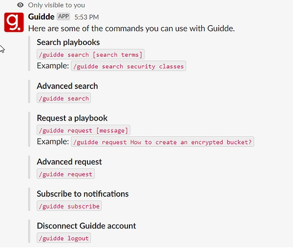 Guidde enables you to search, watch and share playbooks with your team or your customers within Slack, available from the Slack app directory. Get notified in Slack when playbooks are being requested.