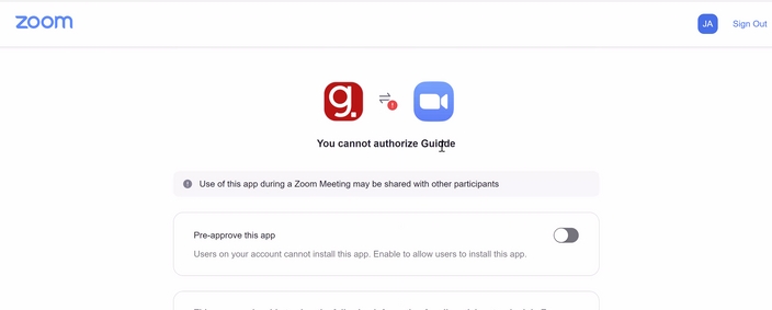 Pre-approval is a setting that the your organization's Zoom admins can apply to their accounts and users under their accounts - this can be applied to multiple ZApps, including the Guidde Zoom application.