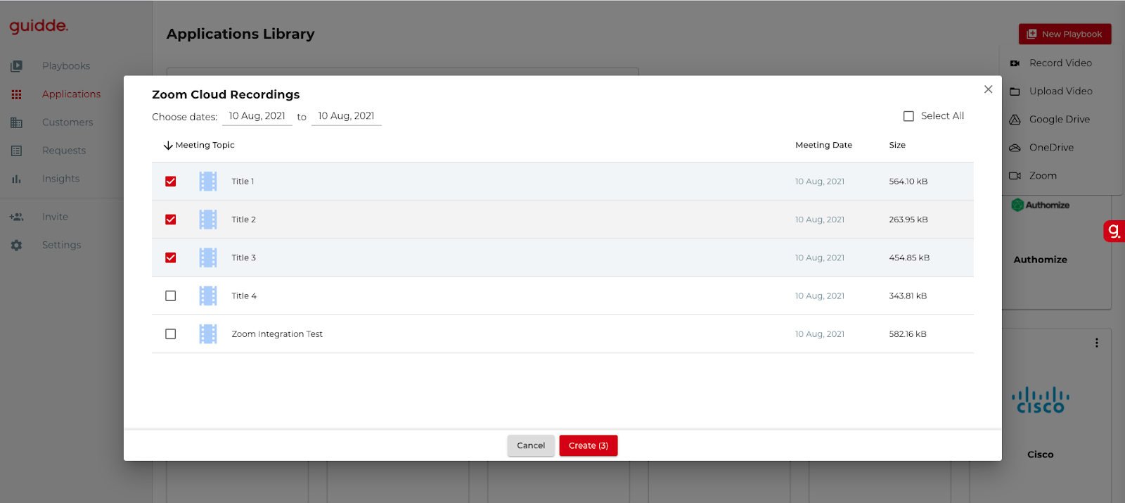 Create - upload Zoom Cloud recordings and create Guidde playbooks under the New Playbook button: